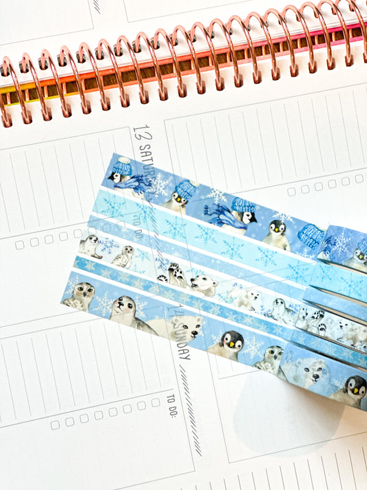 Snow Animals Penguins Polar Bears Seals Winter Arctic Animals Washi Tape Set January 2024 - W099