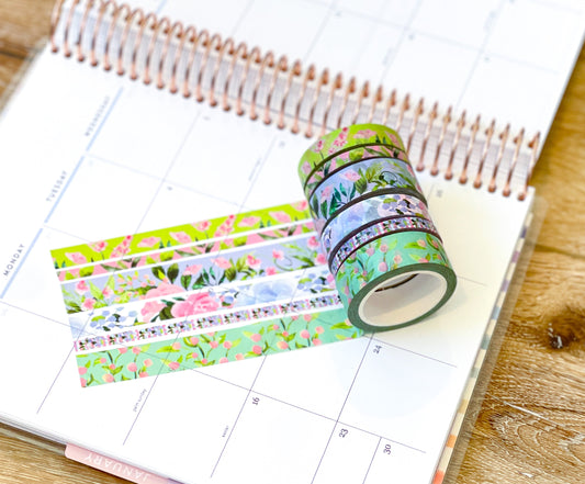 Pink & Teal Flowers Spring & Summer Washi Tape Set (#W058)