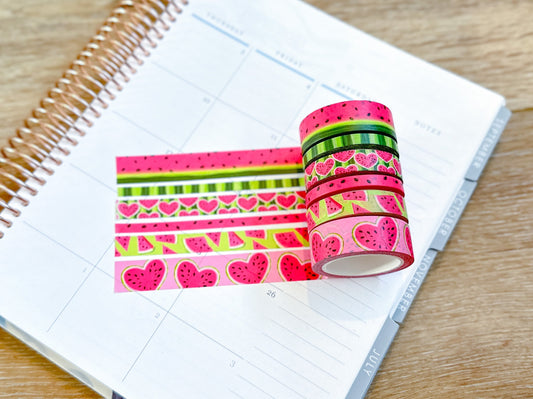 Watermelon Fruit Summer Pink & Green Washi Tape Set - W087