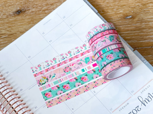 Pink & Teal Flowers Spring & Summer Washi Tape Set (#W058)