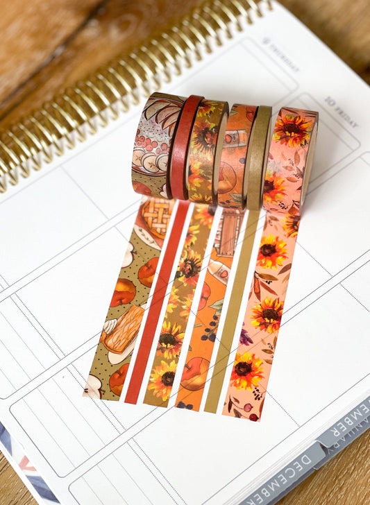 Fall Apples & Sunflowers Autumn Washi Tape Set (#W012)