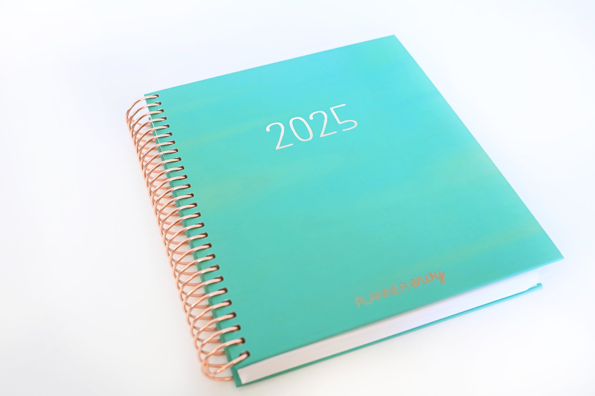 2025 Planner - Horizontal Layout, Spiral Bound - "Teal Strokes" (#102)