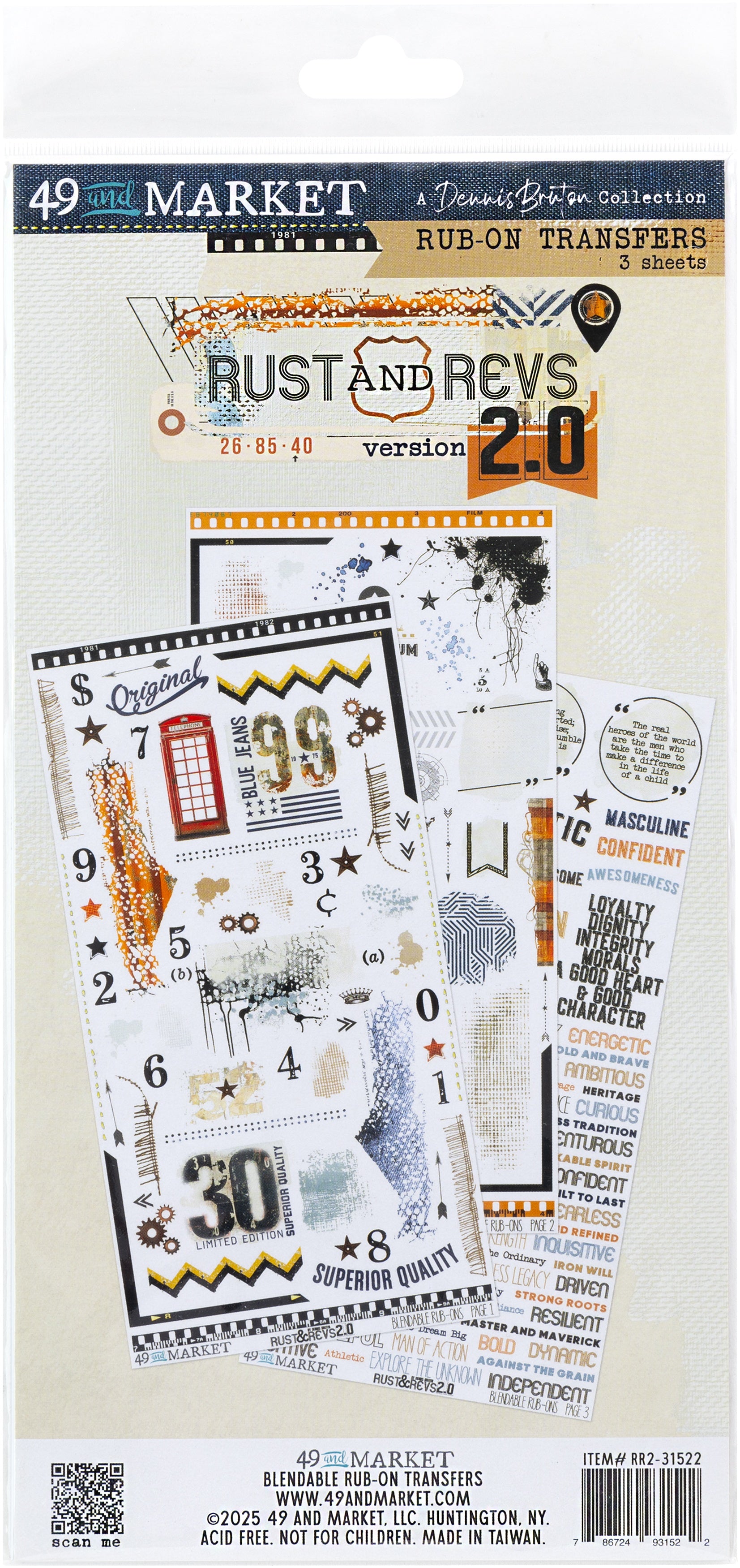 49 And Market Rub-On Transfer Set 6"X12"-Rust & Revs 2.0
