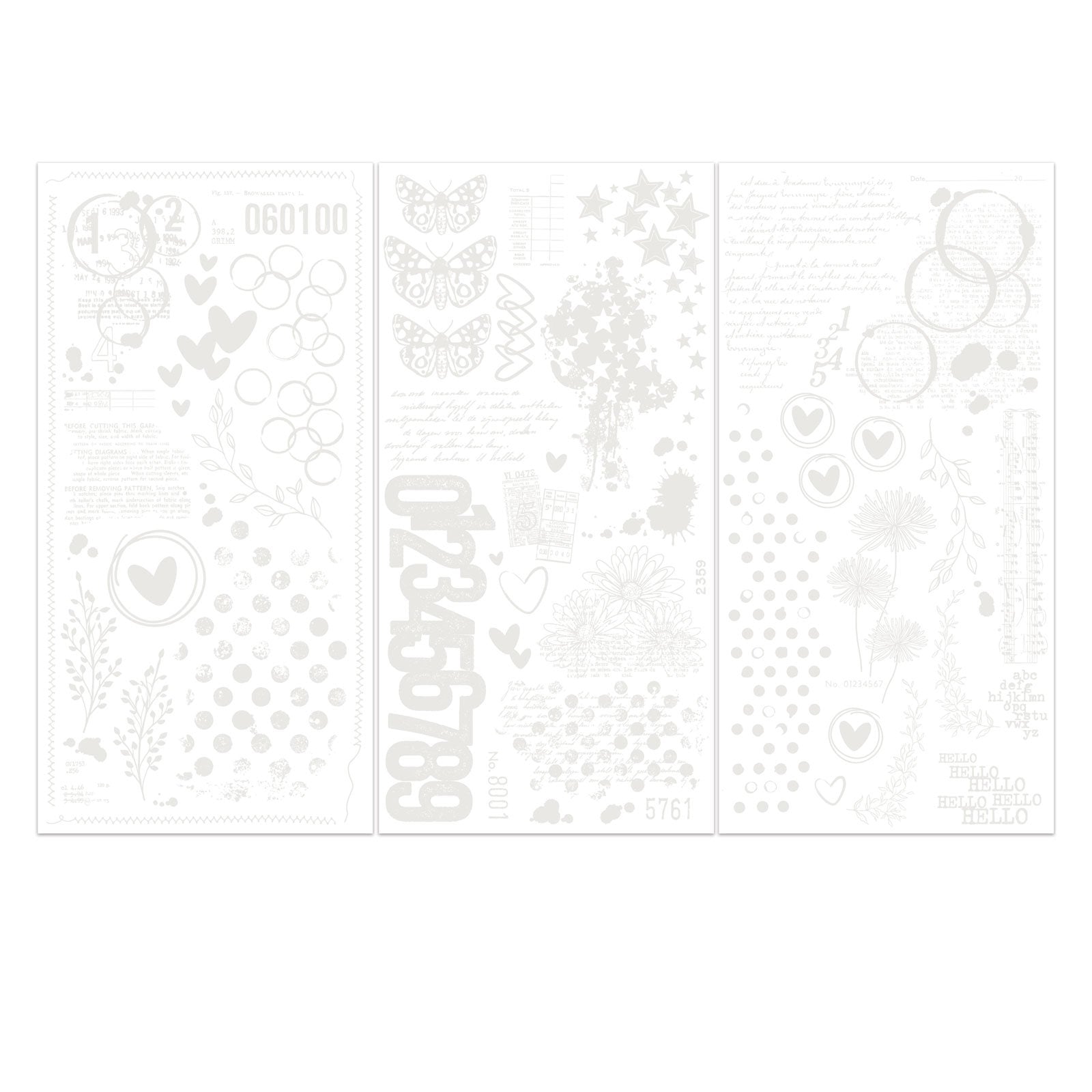 Unleash your creativity with the 49 And Market Rub-On Transfer Set - Irresistible Curiosities by Vicki Boutin. Perfect for the passionate crafter, this set transforms ordinary projects into extraordinary works of art. Featuring three sheets of acid-free, easy-to-use designs, these transfers are ideal for adding a unique flair to scrapbooks, journals, and DIY crafts. The intricate patterns, including whimsical butterflies, floral motifs, and playful numbers, offer endless possibilities for creative expression. Simply rub on the designs to instantly elevate your projects with a professional touch. Whether you're a seasoned artist or a crafting novice, this set is your ticket to a world of imaginative possibilities. Transform your crafts today!