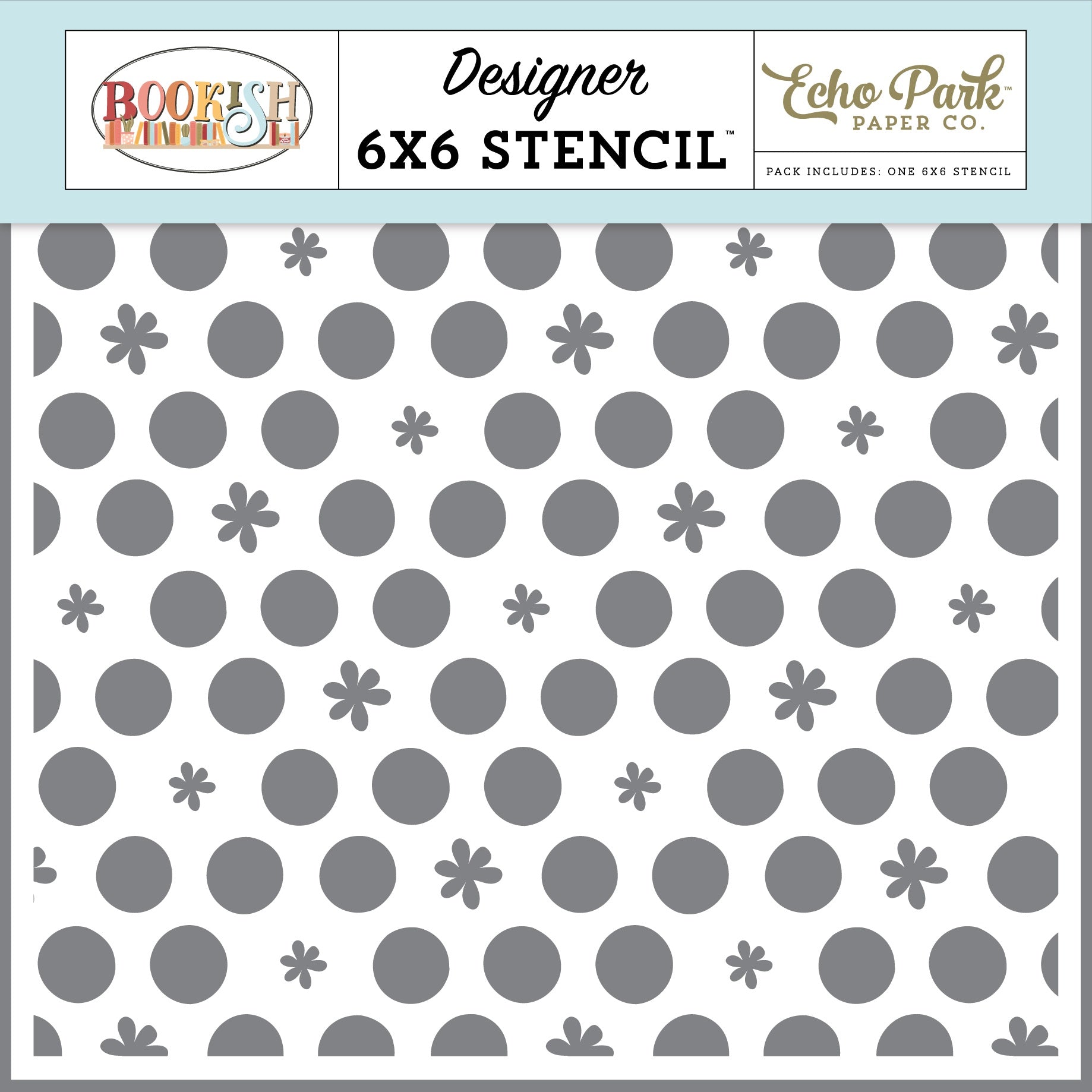 Bookish Stencil 6"X6"-Dots And Flowers
