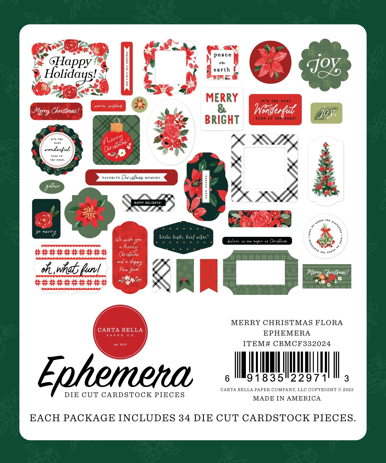 Carta Bella Cardstock Ephemera-Merry Christmas Flora