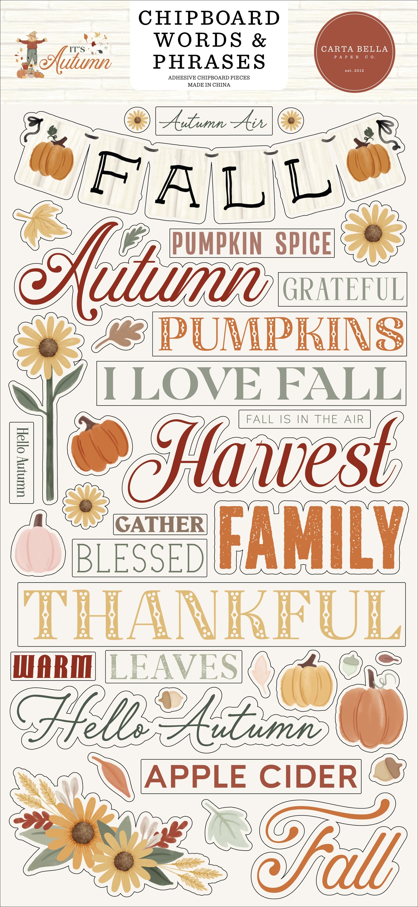 Carta Bella Chipboard 6"X13"-Words & Phrases, It's Autumn