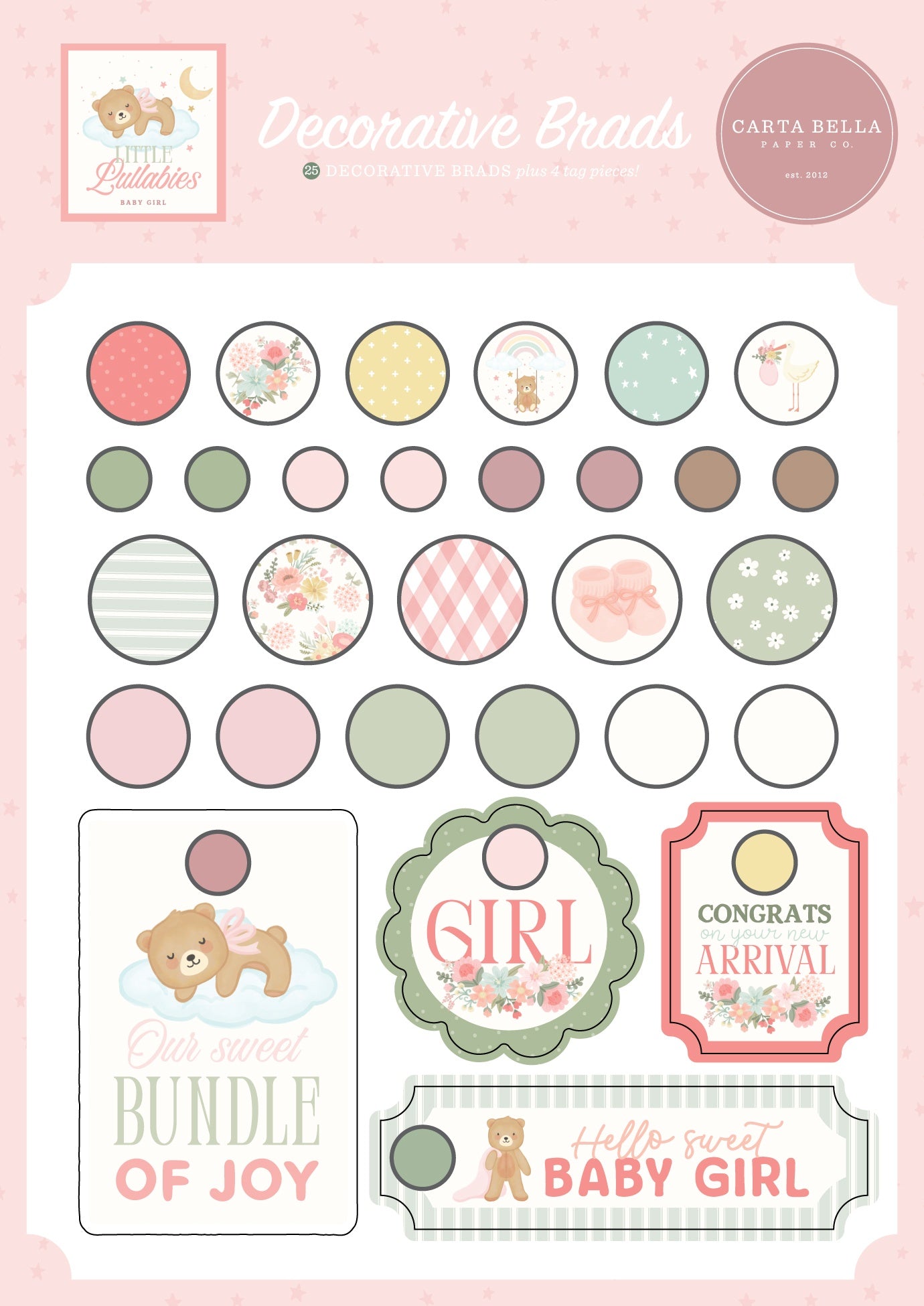 Carta Bella Decorative Brads-Little Lullabies Baby Girl