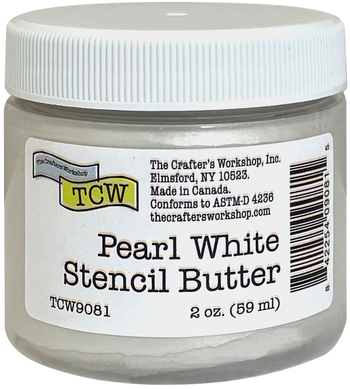 Delicious spreadable Stencil Butter has a shimmer and shine, that spreads easily with a palette knife. It has the body of a soft modeling paste that holds its peaks and valleys for texture and interest and cleans easily with water (be sure to rinse your tools immediately after use). Perfect for spreading through stencils, finger-painting, brush-painting and much more. These colors blend beautifully with each other as well as with all of our Mixed Media Goodies, including our Metallic Pastes! TCW Stencil Butters coordinate beautifully with our ColorSparx Powders. You can even mix the dry powder into the Stencil Butter to create additional unique color tones. Available in easy to use 2 ounce jars. Dries in 15-30 minutes depending on how thickly applied. Great for use on Watercolor Paper, Mixed Media Boards, Canvas, Wood and more.