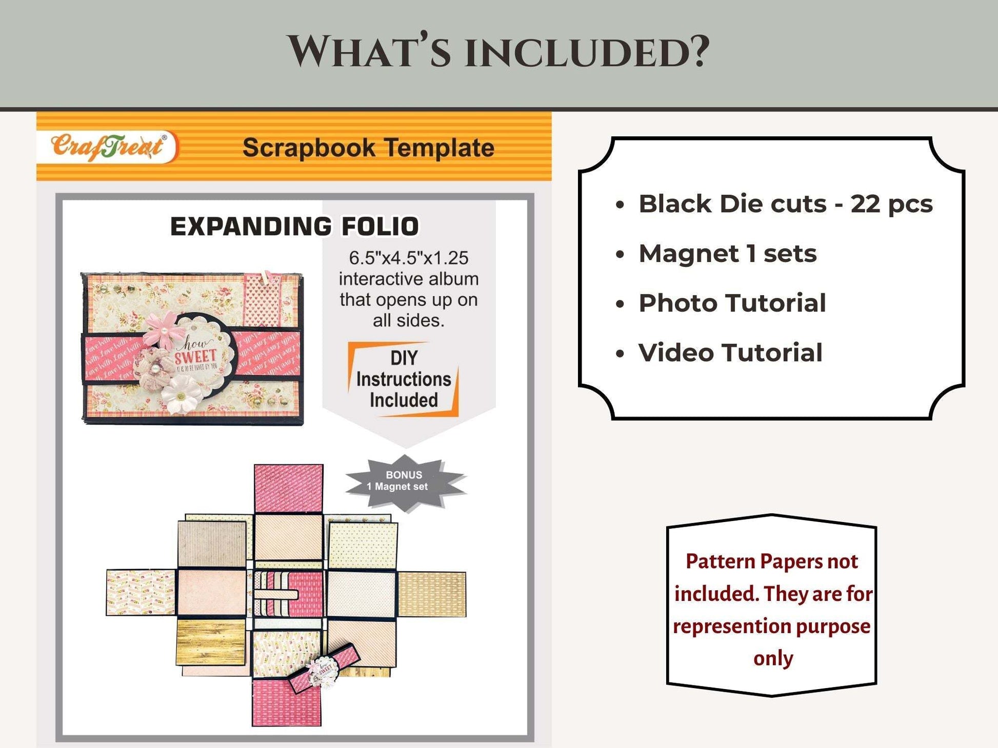 • Pre-cut bases and die cuts for easy assembly