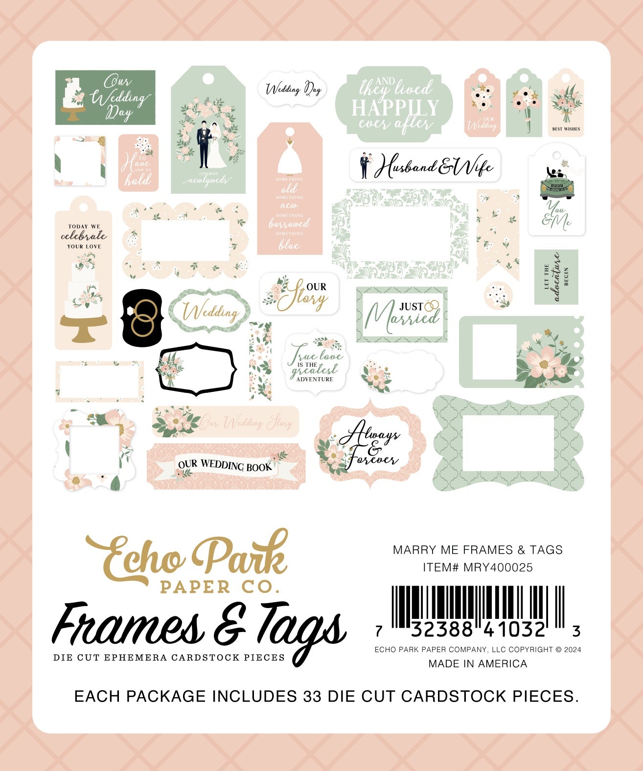 Echo Park Cardstock Ephemera-Frames & Tags, Marry Me