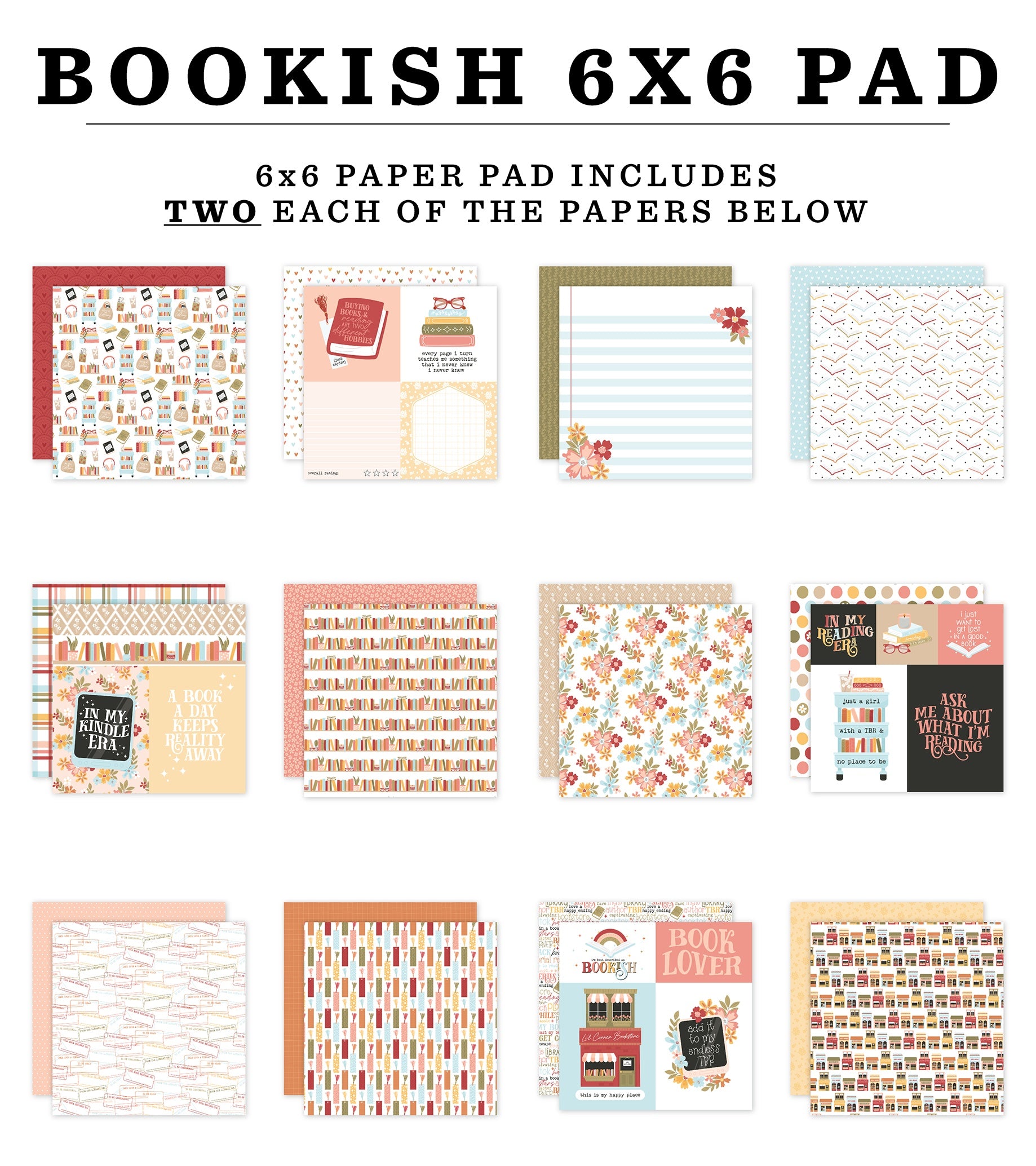 Echo Park Double-Sided Paper Pad 6"X6"-Bookish
