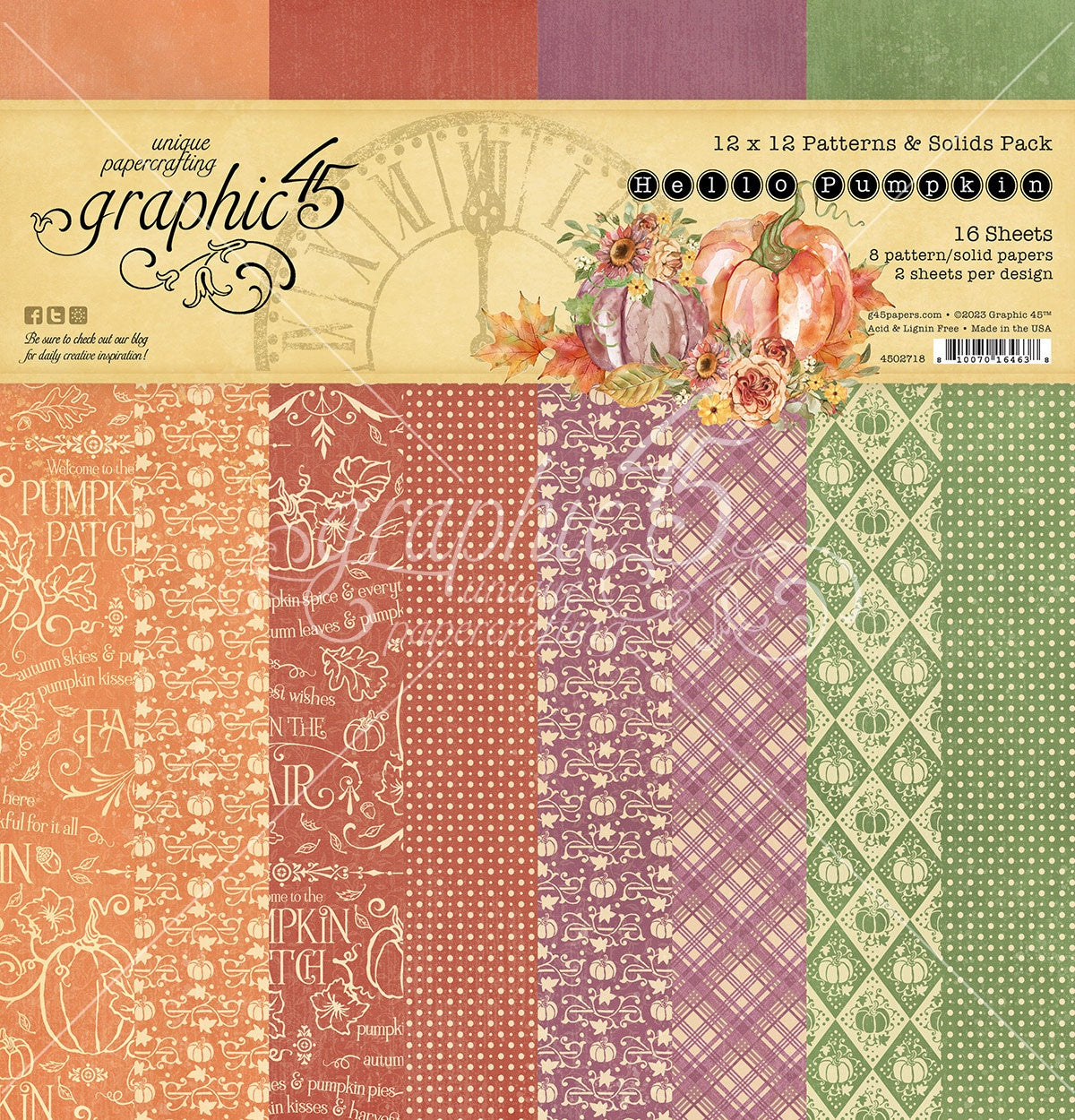 Graphic 45 Patterns & Solids Pack 12"x12"-Hello Pumpkin
