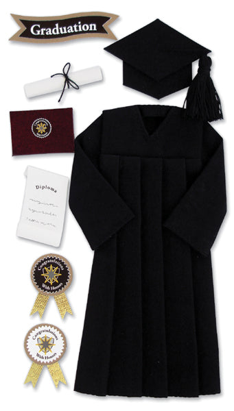 Jolee's Le Grande Dimensional Stickers-Graduation Cap & Gown - Black