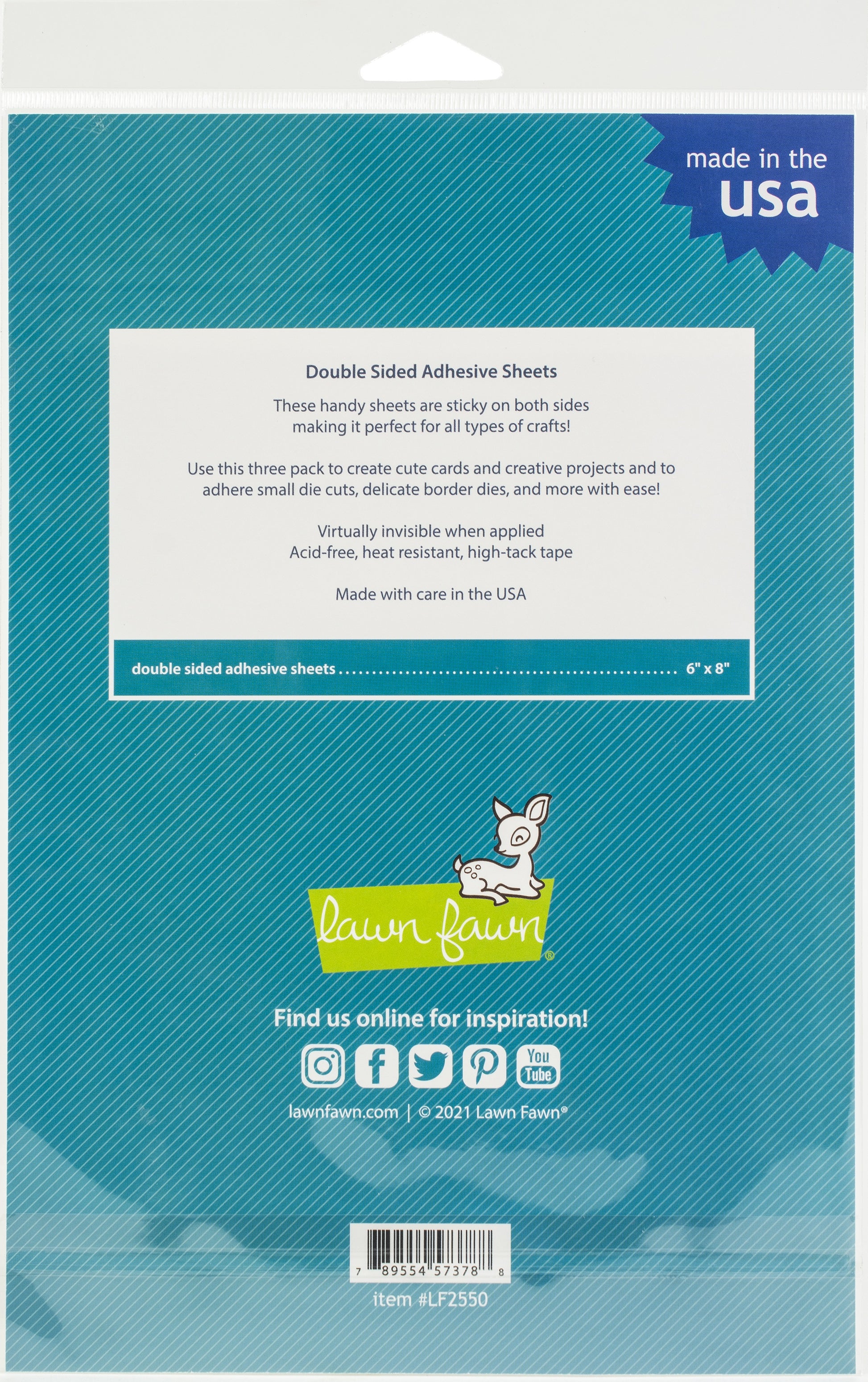 These handy sheets are sticky on both sides making them perfect for all types of crafts. Create cute cards and creative projects, adhere small die cuts, delicate border dies and more with ease. Virtually invisible when applied, Acid-free, heat resistant, high-tack tape. Package contains three 6x8 inch sheets. Made in the USA.