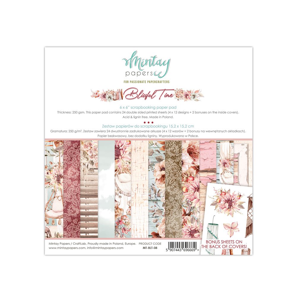 Unleash your creativity with the Mintay Blissful Time 6 x 6 Paper Pad, designed for passionate papercrafters. This exquisite collection features 24 double-sided sheets, including 12 captivating designs and 2 bonus sheets on the inside covers. With a luxurious thickness of 250 gsm, each sheet offers a sturdy canvas for your scrapbooking, card-making, or DIY projects. The enchanting floral patterns and rustic textures effortlessly evoke a sense of timeless elegance, perfect for capturing cherished memories. Acid and lignin-free, these papers ensure your creations remain vibrant over time. Made in Poland with meticulous craftsmanship, the Mintay Blissful Time Paper Pad is your gateway to endless artistic possibilities. Transform your projects into works of art with this beautiful, versatile paper pad.