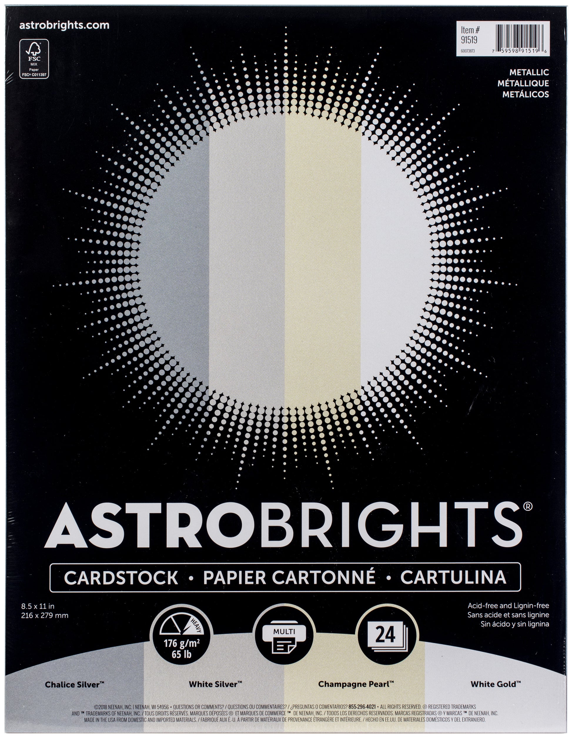 Neenah Metallic Cardstock 8.5"X11" 24/Pkg-Astrobrights, 4 Colors/6 Each