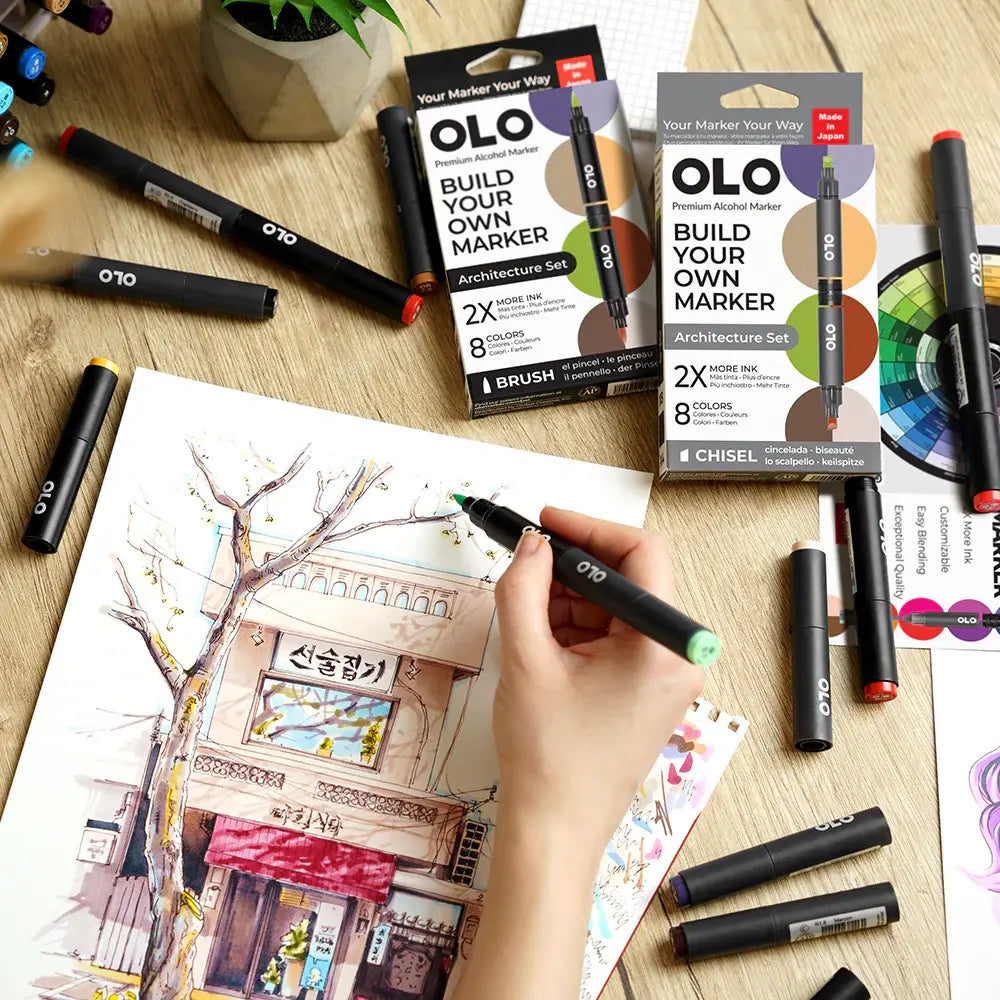OLO Architecture 8-Piece Brush Alcohol Marker Set