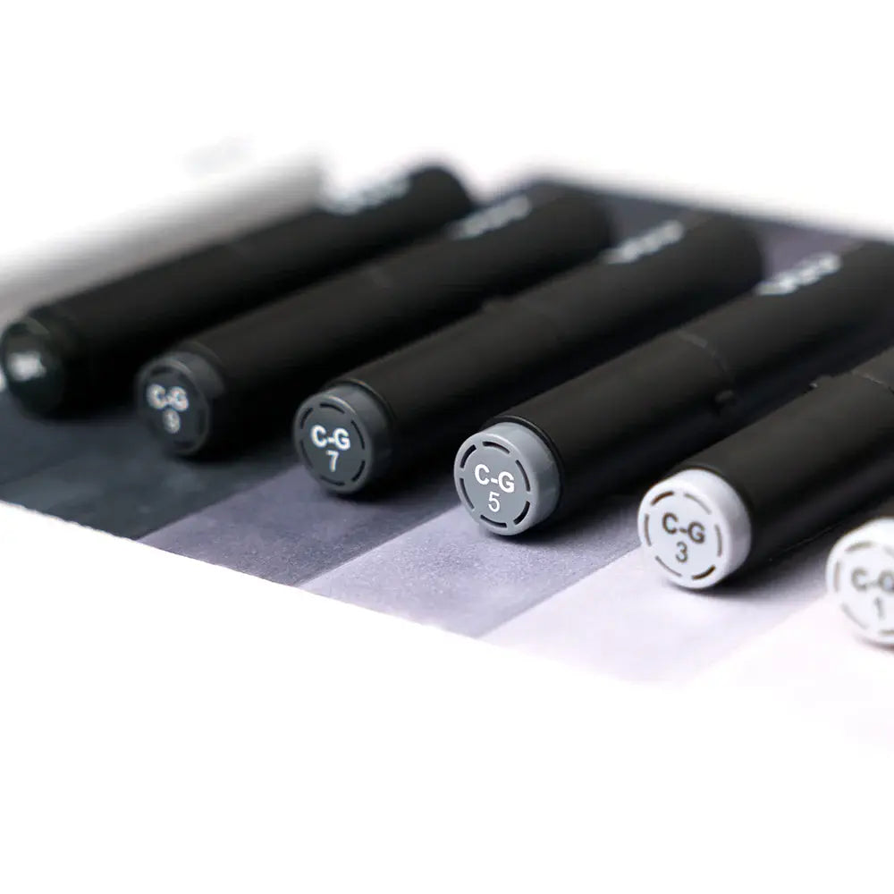 Colors in the set: CG0, CG1, CG3, CG5, CG7, CG9, BK Blue Black, ZERO (blender).