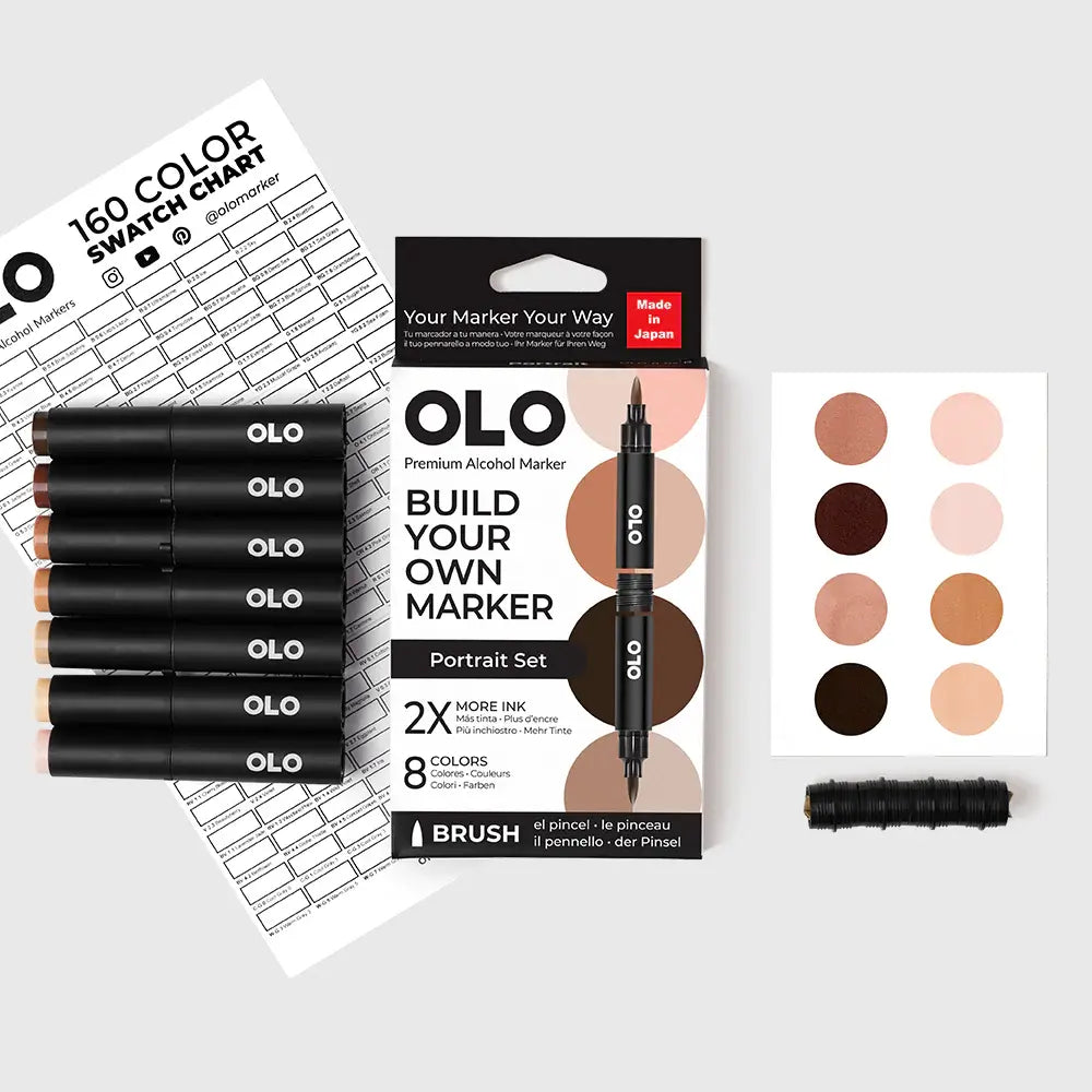 OLO Portrait 8-Piece Brush Alcohol Marker Set