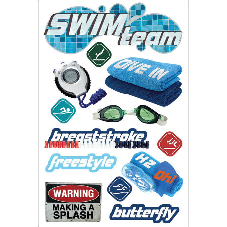 PAPER HOUSE-3D Sticker. These stickers literally pop right up off of the page. It is a fun way to accent any project. This package contains a variety of stickers on a 4-1/2x7 inch backing sheet. Design: Swimming. Imported.
