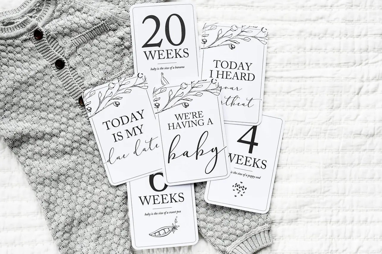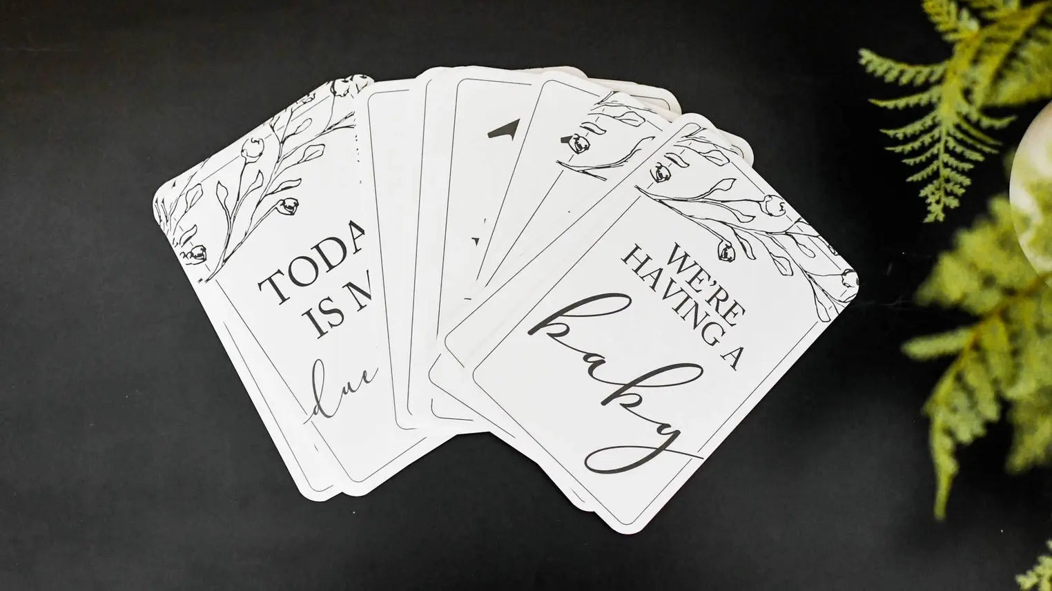 Celebrate every magical moment of your pregnancy with Duncan & Stone's Pregnancy Milestone Cards. Thoughtfully crafted for expectant mothers who cherish capturing their journey, these cards are more than just photo props—they're timeless keepsakes. Each card is beautifully designed to highlight significant milestones, from the first flutter to the final countdown. Made with high-quality materials, they ensure your memories are preserved in style. Perfect for creating stunning photos to share with loved ones or to keep as a personal memento. Whether you're documenting your first trimester or nearing your due date, these cards add a touch of elegance and joy to your pregnancy story. Embrace the journey and capture every step with these exquisite milestone cards.