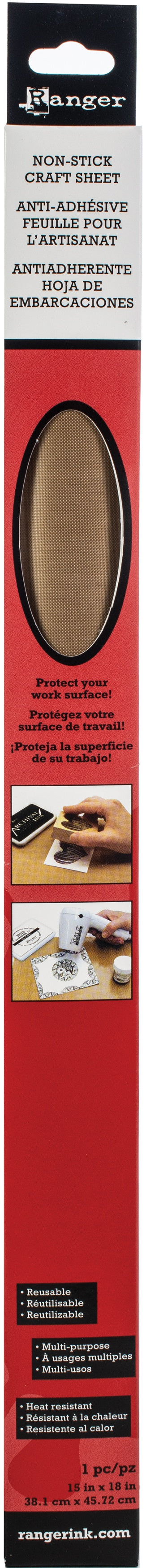 RANGER-Inkssentials Craft Sheet. 15x18. This re-usable non-stick multi-purpose craft sheet offers a heat resistant slick work surface for easy clean-up. Paint glue and embossing powders peel off and inks can be easily wiped clean. Its generous size is perfect for Melt Art projects scrapbook pages rubber stamping embossing iron-on transfers polymer clay painting and more.