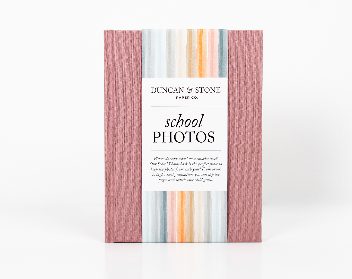 School photos mark a moment in time, but most people don't know what to do with all of them. Instead of them getting stuck in a drawer or lost over time, our School Photos journal allows you to keep those precious moments altogether in one special place.