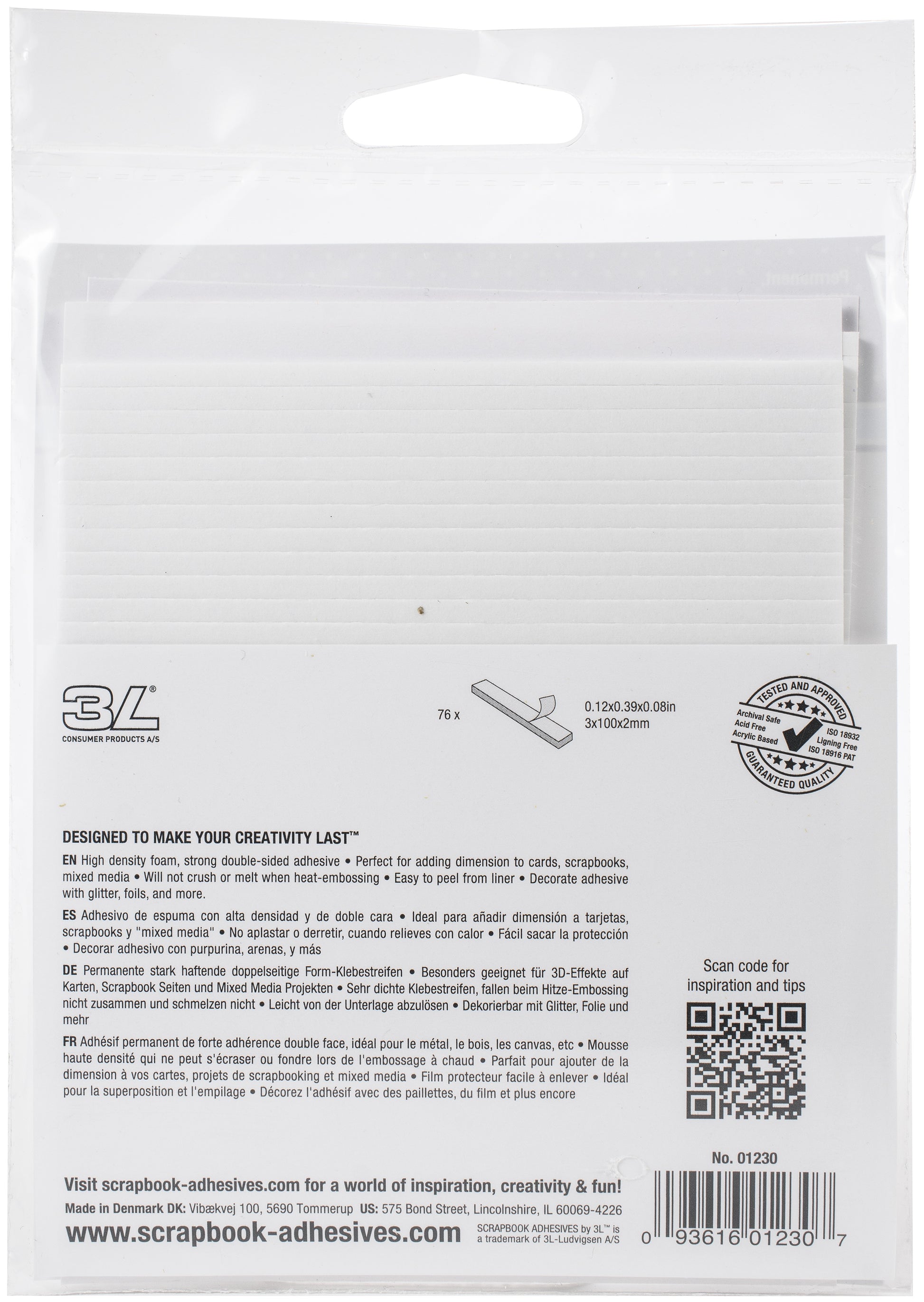 Use 3D Foam Strips to create dimension on cards, scrapbook pages and mixed media crafts. High density foam does not crush and can be heat embossed. Perfect for paper to paper applications, but also works on wood, glass, plastic, canvas, metal, and ribbon.This package contains 76 .12x.39x.08 inch 3D foam strips. Imported.