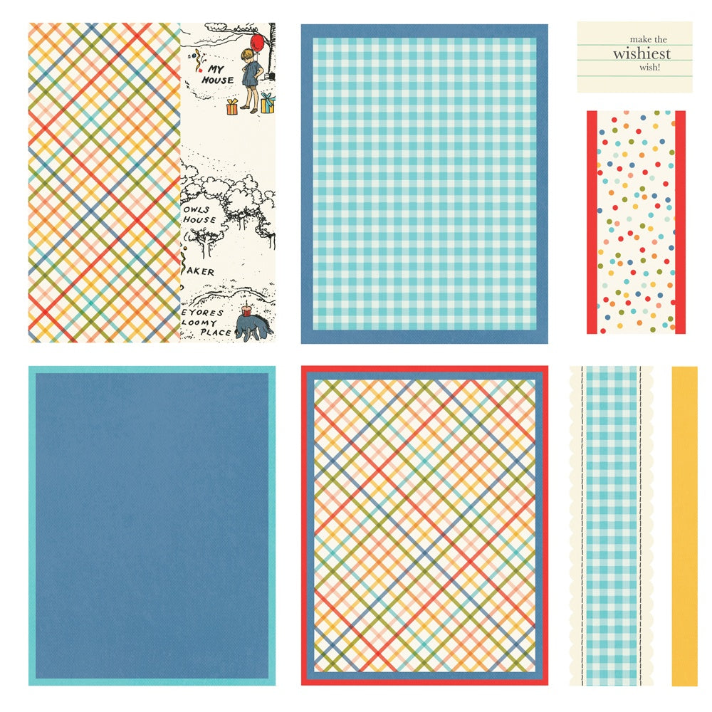 Building on the success of our Say Cheese Classic Pooh collection, this new set brings to life the adorable birthday-themed elements our designer created. This package contians (43) Chipboard Pieces, (85) Die-Cut Bits & Pieces, (8) 4.25 x 5.5 White Cardstock Bases and Complete Step-By-Step Instructions.