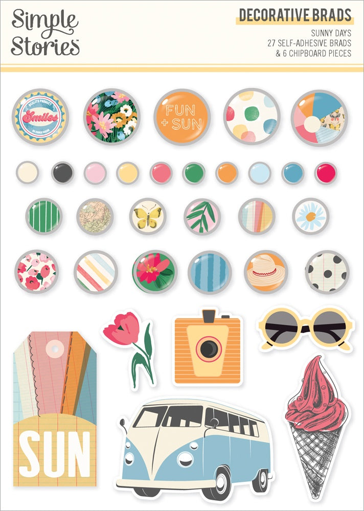 Sunny Days Decorative Brads-27 Brads, 6 Chipboard